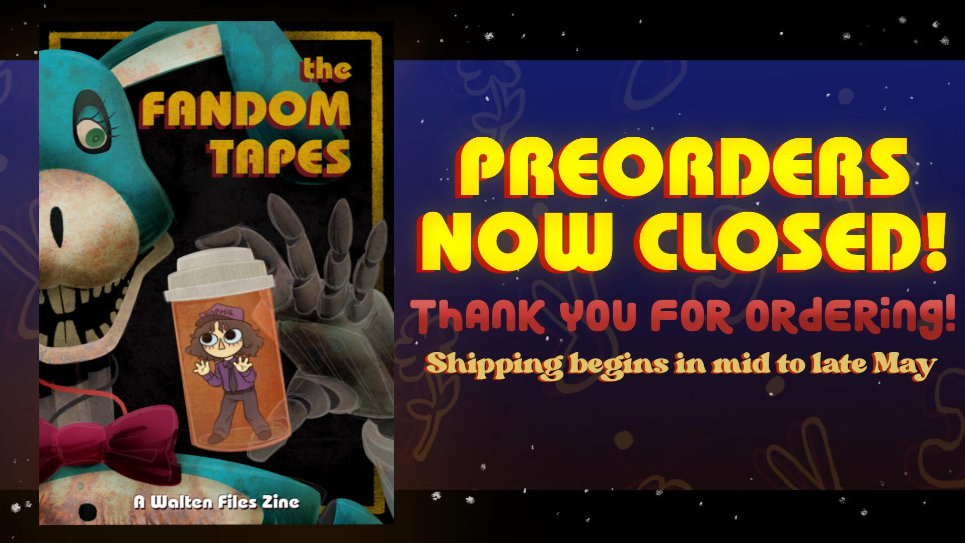 [email protected]I simply wanted to come here and say a big thank you to the supporters, artists, creators, and close ones that have come and gone to make this production even happen. Although it was our first and had many mistakes I simply ask to have patience and understanding for what ever comes of the project. This site will be up as an archive and I'm sure many have moved on from Walten Files as a whole, but I will always have a soft spot for the memories made with this project.We'll try not to be strangers and hope to all that bought anything from our store cherish it well. There is much more to say but I think that settles it for now. Thanks again, it was one heck of a ride.- Tailsy Evergreen (Co-creator of the Zine)